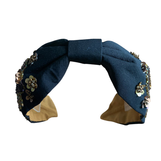 Handbeaded Headband Turban - Flower Black with Gold beads & sequins