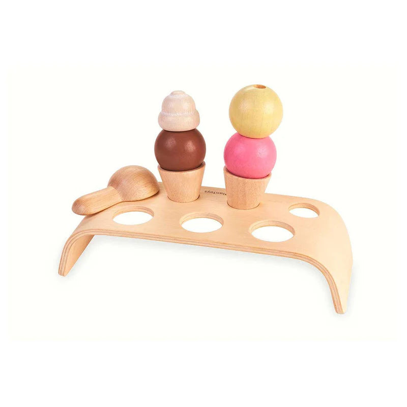 Who doesn't like it ice cream? With the PlanToys ice cream set made of wood, children can create their own ice cream. The set is made of durable wood, has a nice design and a size of 26 x 10 x 6 cm (tray). An original gift for children from 3 years.