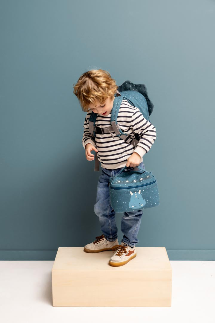 From now on you can take your favorite lunch with you in this handy lunch bag. This is a thermal bag, which means that it will keep your lunch either warm or cold. The lunch bag also has a coating on the outside which makes it waterproof! The floppy ears add a playful touch and the handle makes the lunch bag conveniently portable and compact. The bag features a large zipper for easy opening and closing. There is also a name tag along the inside so you don’t have to worry about losing your lunch buddy. A separate little pocket on the back of the bag fits a cookie or snack that doesn't need to be kept at temperature. This fun lunch bag perfectly fits a Trixie water bottle and lunch box.- Composition