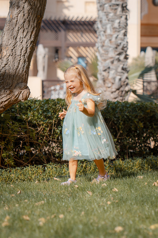 Embroidered Flower Tulle Dress