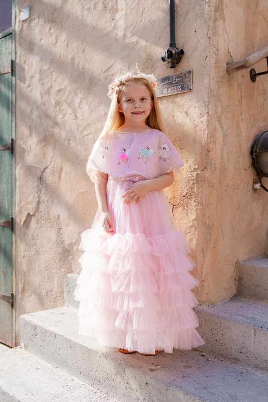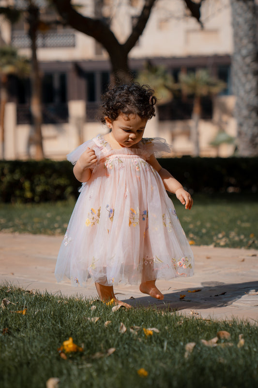 Butterfly Dress with Flower Embroidery - Pink