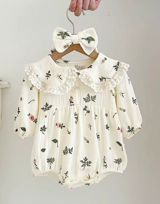 Muslin Leaves Romper Set