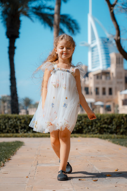 Butterfly Dress with Flower Embroidery - Heavenly White