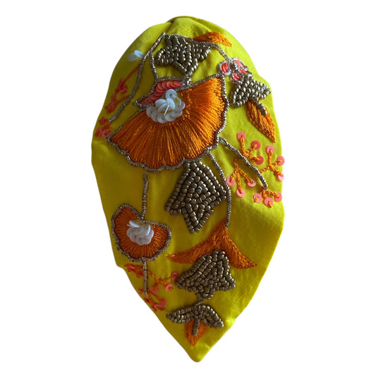 Handbeaded Headband Turban Floral Yellow & Orange Sequins & Beaded