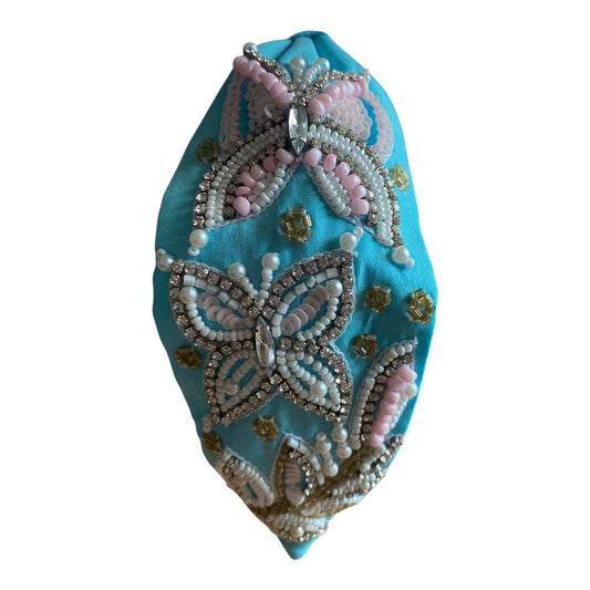Handbeaded Headband Turban - Butterfly Blue