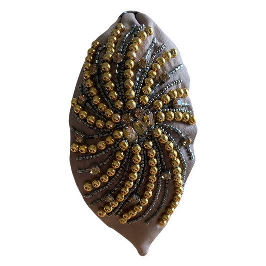Handbeaded Headband Turban - Beads of Rays Gold and Brown