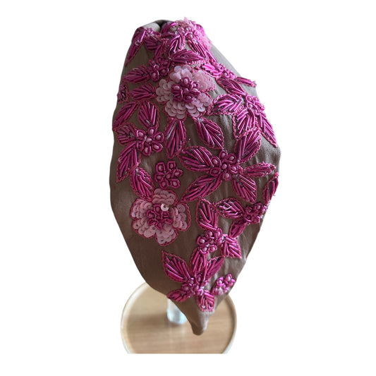 Handbeaded Headband Turban - Flower Pink & Fushia Beads & Sequins