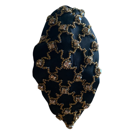 Handbeaded Headband Turban - Black with Golden beads and stones